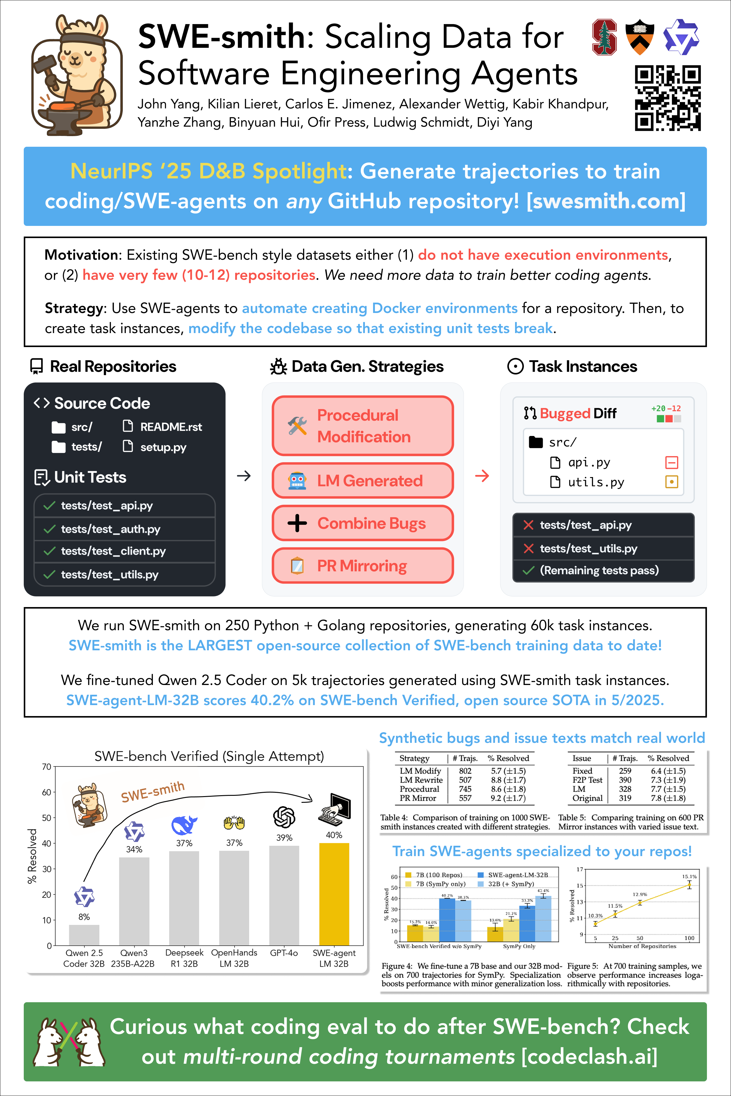 John Yang*, Carlos E. Jimenez*, Alex L. Zhang, Kilian Lieret, Joyce Yang, Xindi Wu, Ori Press, Niklas Muennighoff, Gabriel Synnaeve, Karthik Narasimhan, Diyi Yang, Sida I. Wang, Ofir Press
